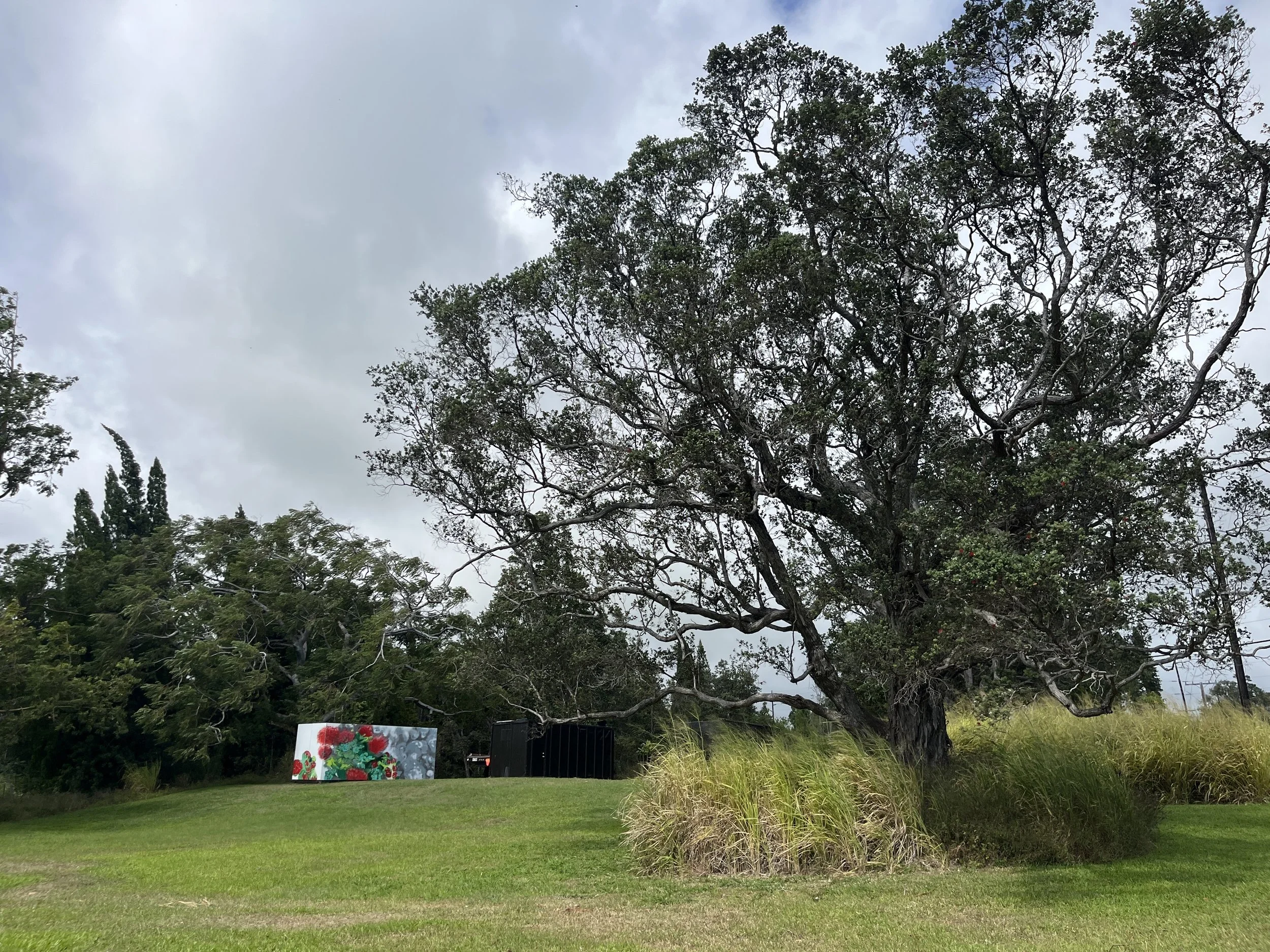 These semi realistic renderings of the ohia lehua leaves, flowers, and buds invite the viewer in to appreciate the glorious color and vibrancy of the native Hawaiian trees. The speckled grey backdrop sets a stark contrast against the color of the blooms and hints at the encroaching ohia disease, Rapid Ohia Death, while the buds promise new life and healing.